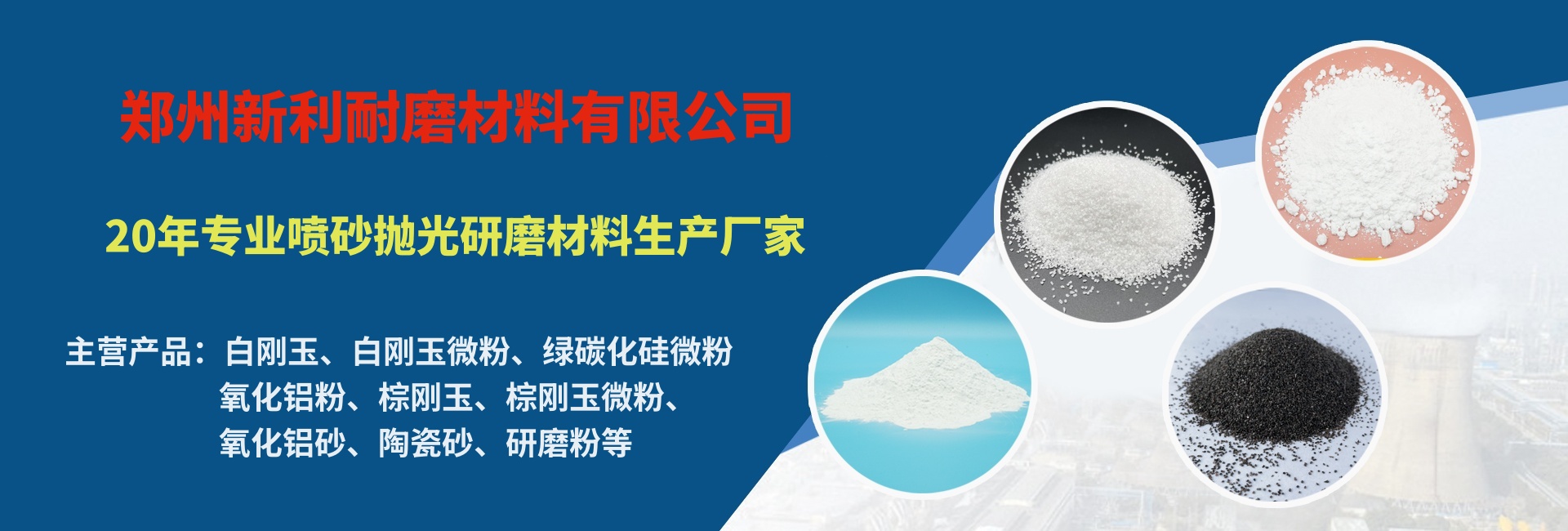 鄭州新利耐磨材料有限公司主要產(chǎn)品:包含白剛玉砂、白剛玉微粉、棕剛玉、棕剛玉微粉、 綠碳化硅微粉、氧化鋁砂、氧化鋁粉、研磨粉等多系列產(chǎn)品,為客戶提供豐富的產(chǎn)品型號及加工定制服務(wù)...